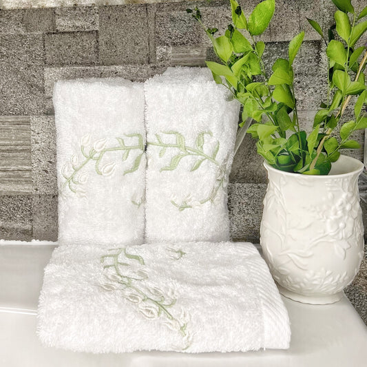Introducing the Feather - Guest Set - cotton face towels embroidered with beautiful boho chic...