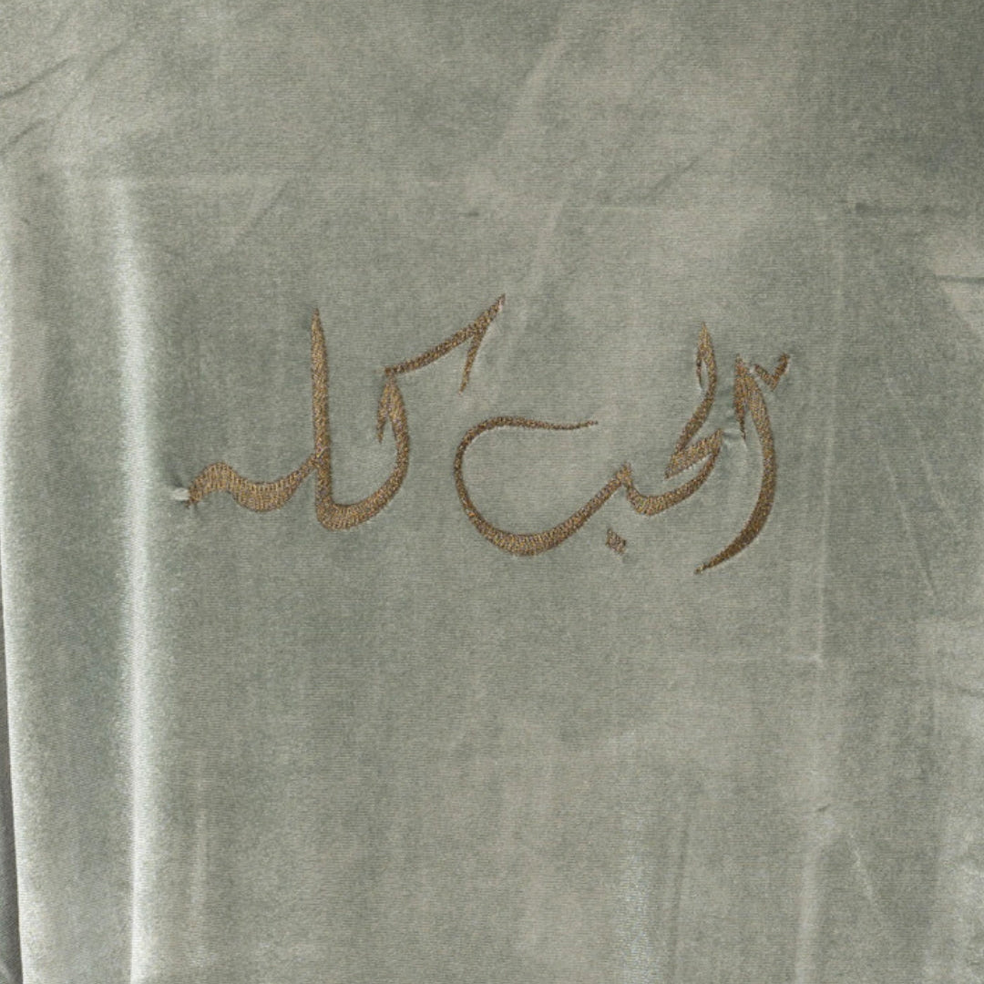 Experience the beauty of calligraphy with our Kaftan! Made with velvet, this kaftan features a traditional calligraphy design. Stay comfortable and stylish with this unique garment.