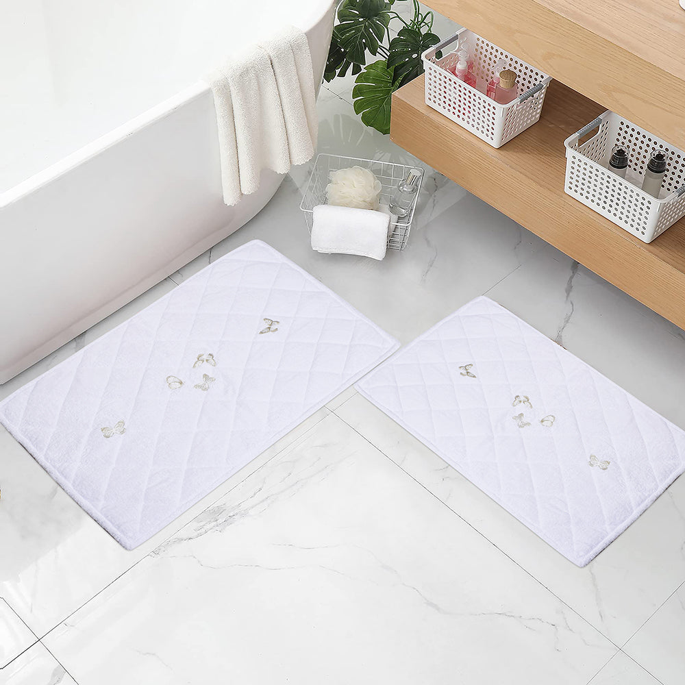 Embellish your bathroom with this 100% cotton bathmat set, featuring beautiful golden butterflies. With its cushioned feel and graceful design, it's an ideal addition to your home, enhancing your comfort and style.