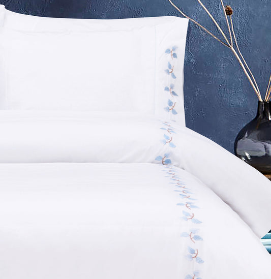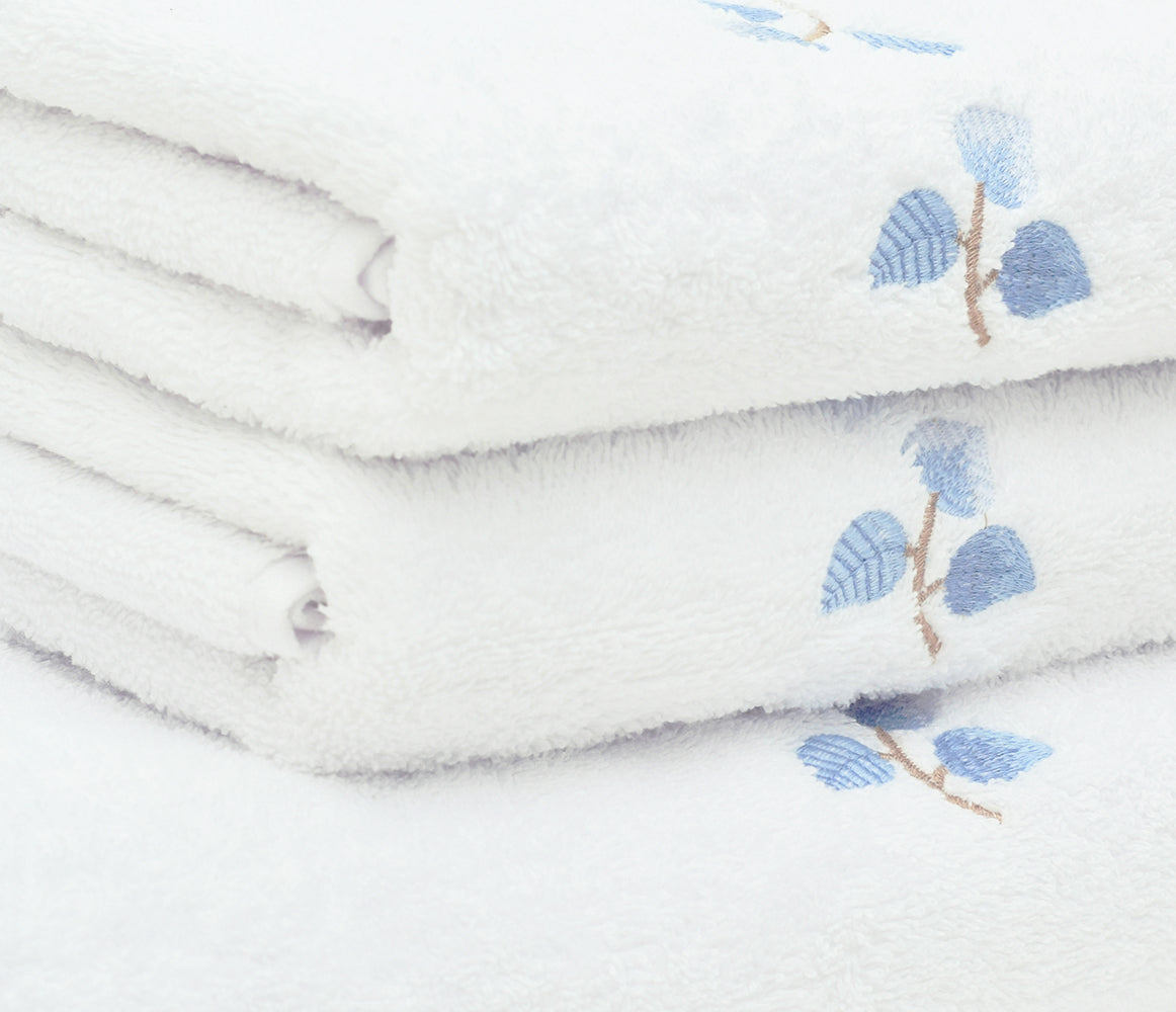Experience the ultimate comfort of Fuiage's 100% cotton towel set, beautifully embroidered with little blue leaves. Unwind and enjoy the softness of these towels!