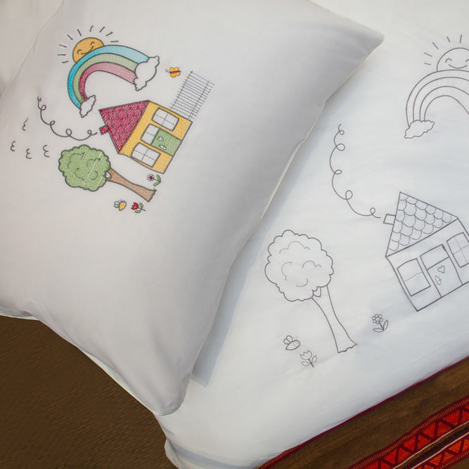 Make bedtime fun for kids with the Happy House Duvet Set! Bright colors and an adorable design embroidered on 100% fine Egyptian cotton create a cozy and inviting atmosphere that kids will love. Crafted for comfort and style!
