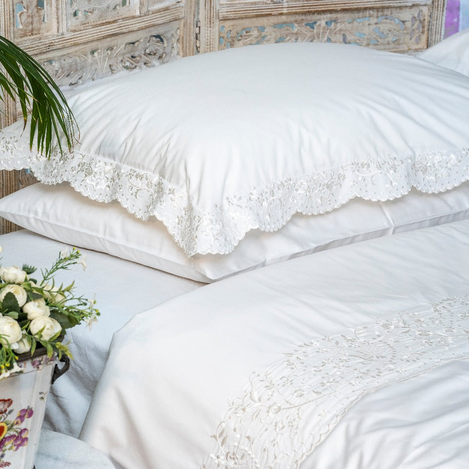 My Dream Sheet Set. Sleep like royalty on this luxurious set of bedsheets made of 100% fine Egyptian cotton and decorated with beautiful white embroidery. A unique blend of style and comfort!
