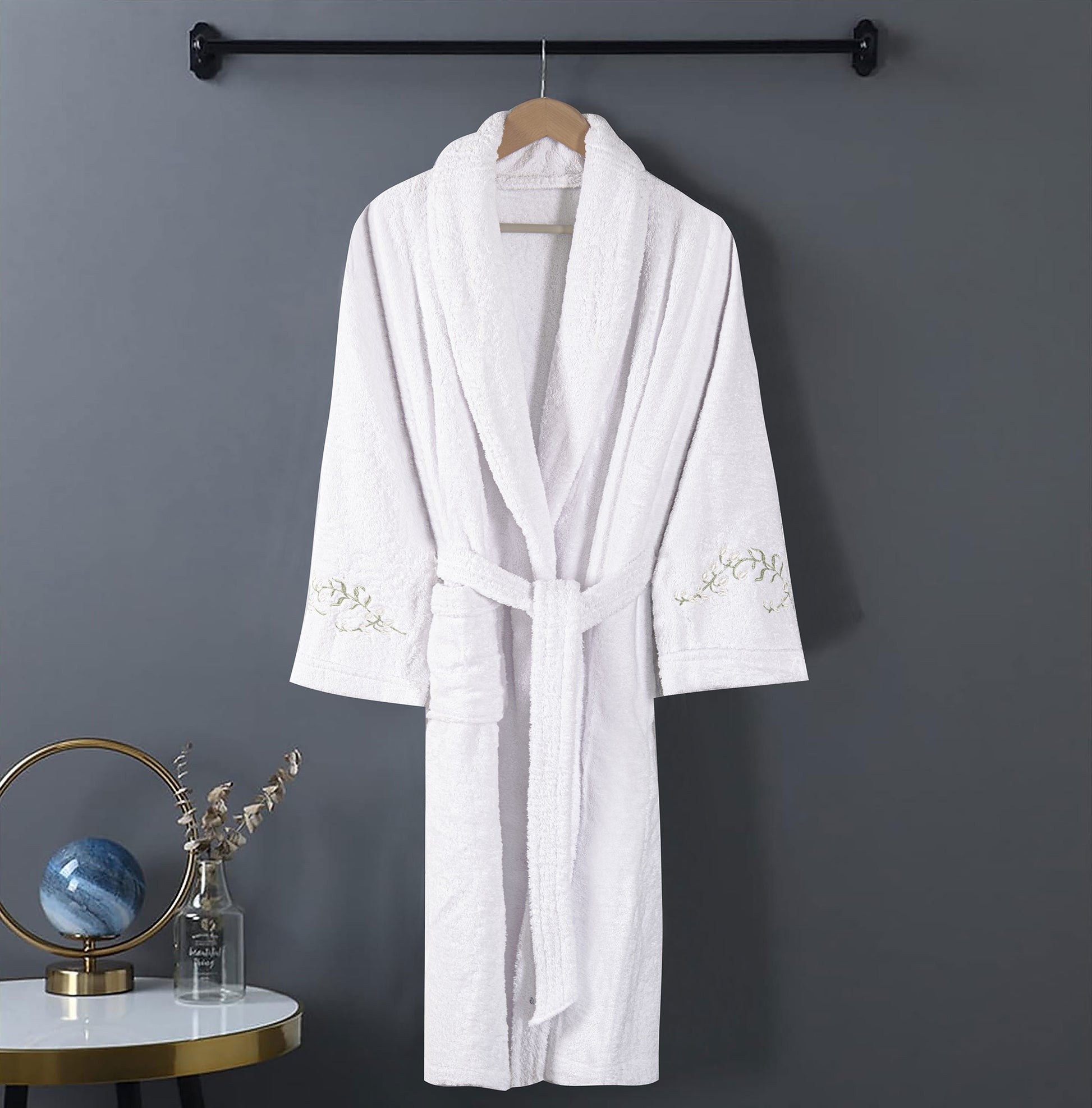 Sanabel's 100% cotton bath robe offers luxurious comfort and coziness after a refreshing bath. Its terry towel fabric ensures a warm and comforting touch, making it the perfect bathing accessory for a spa-like experience at home.