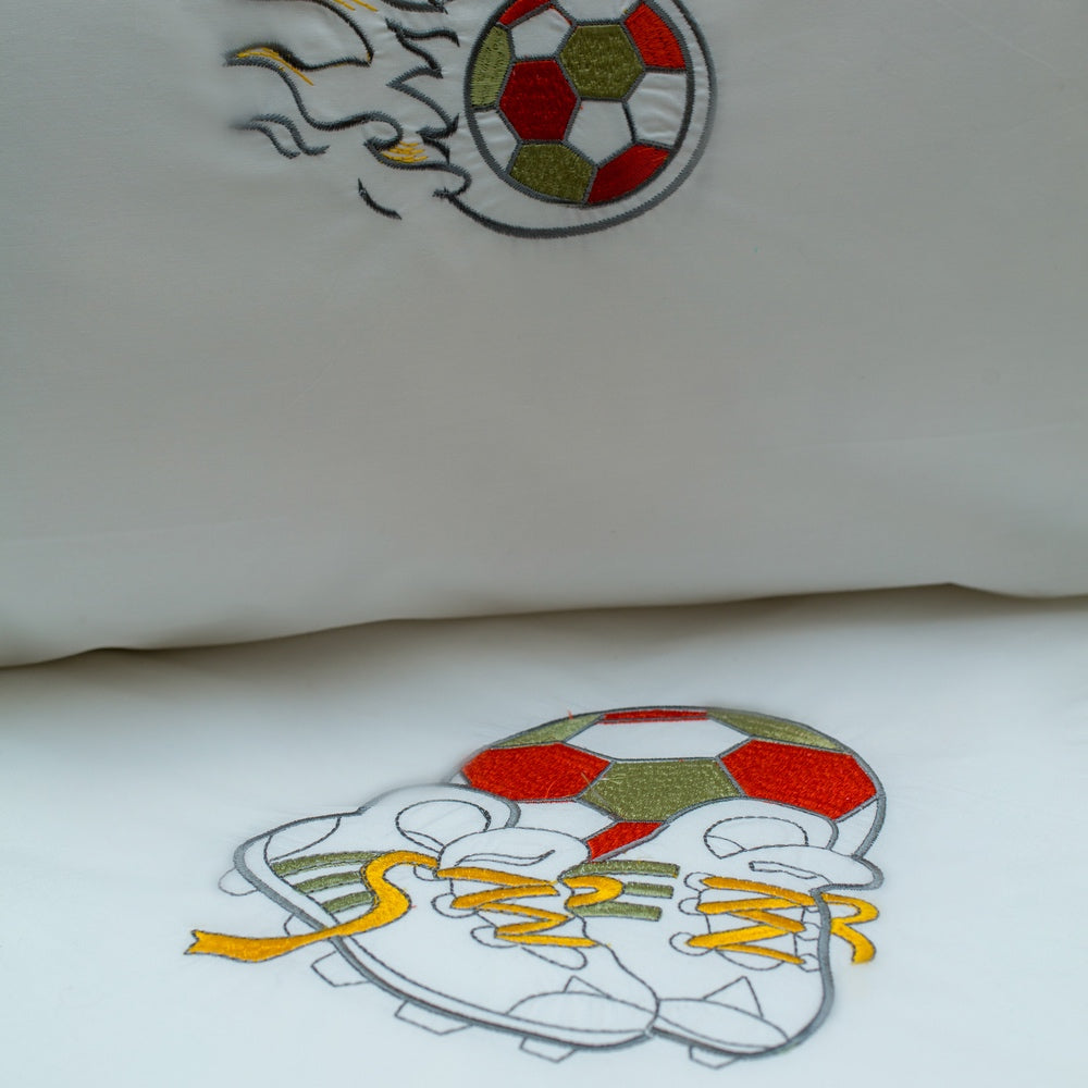 Bring the energy of the soccer field into your bedroom with this Soccer Duvet Set! Crafted from luxurious 100% Egyptian cotton, this duvet is incredibly soft and comfortable for a peaceful night's sleep. Let your dreams be filled with soccer games every night! 200TC for lasting quality.