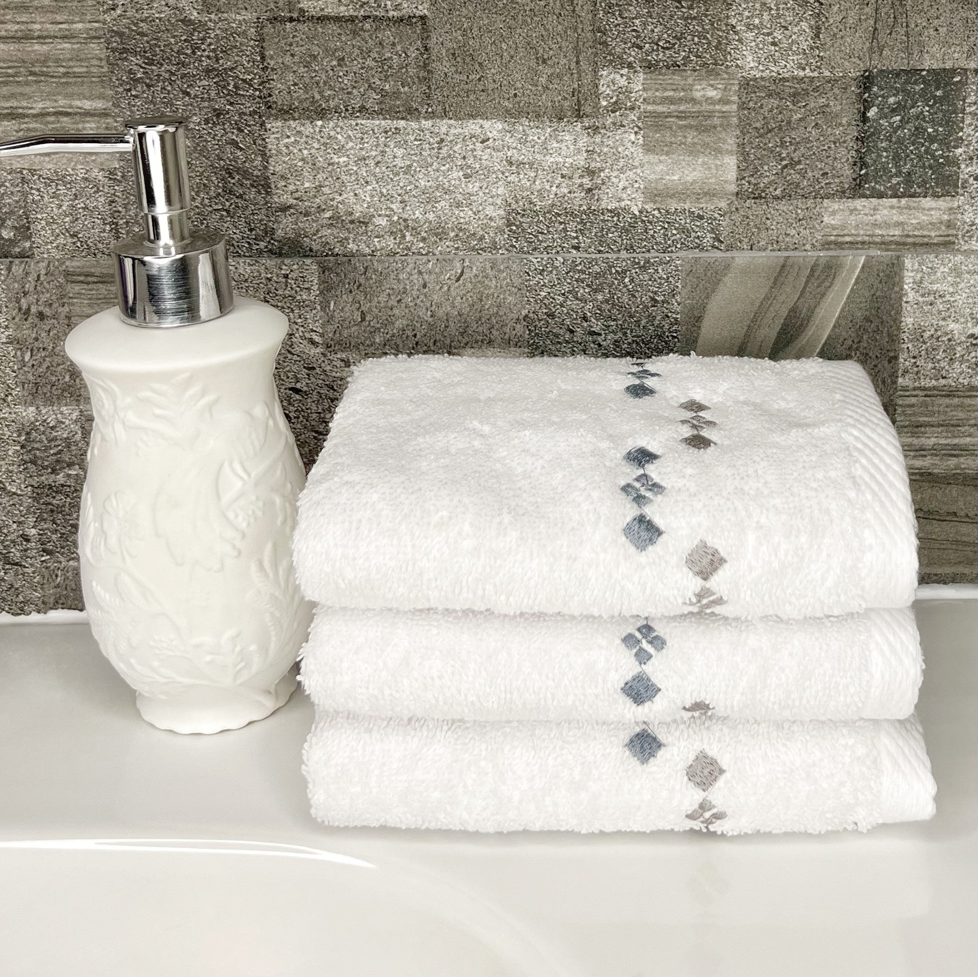 Welcome your guests with a touch of luxury - our Stone Guest Towel Set. Crafted from soft, terry 100% cotton for your comfort and convenience, these contemporary towels add a sophisticated feel to your bath. Bring style and warmth to your home!