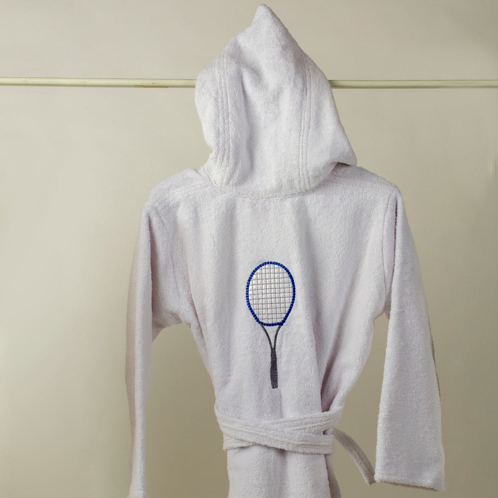 Relax in total style with this adorable Tennis Kids' Bath Robe! Showcasing a tennis racket design, this robe is made from 100% cotton for ultra-soft comfort and warmth after bath time. Perfect for your little champ to make a statement while lounging!
